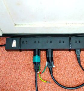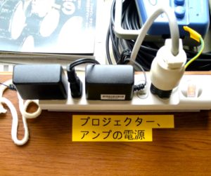 ③ミキサーアンプ、⑤液晶プロジェクター、⑧楽器用アンプの電源は、
